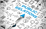 Kompass zeigt auf blauen Schriftzug Public Relations