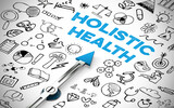 Kompass zeigt auf Schriftzug Holistic Health als Gesundheit Konzept