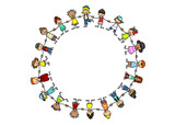 Große Gruppe Cartoon Kinder halten Hände im Kreis