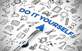 Kompass zeigt auf Schriftzug Do it yourself zwischen Icons