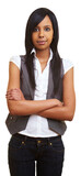 Junge selbstbewusste Frau als Unternehmerin oder Studentin mit Muskel Armen