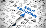 Kompassnadel zeigt auf Schriftzug Self-Tracking zwischen Icons