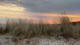Pan shot of sunset over the Baltic Sea: beach, sand dunes, and beach grass at Graal-Müritz, Germany.