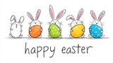 Cute Easter Bunnies Holding Colorful Eggs On White Background For Holiday Greetings And Spring Celebrations Hand Drawn Illustration