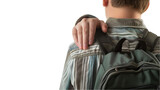 Student stands proudly holding a book with a backpack, created AI, PNG