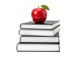 Fresh apple resting on a vintage book for educational theme, cut out transparent