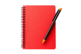 Blank red notebook with pen ready for back to school season in a bright, organized workspace for students and learners