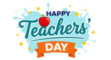 Happy teachers day text with an apple and colorful splashes, symbolizing appreciation for educators and their impact isolated on transparent background