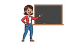 Teacher pointing at chalkboard education focus classroom scene learning concept knowledge sharing.