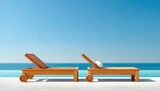Wooden Loungers With Ocean View Under Blue Sky Summer Vacation Concept For Relaxation And Tropical Getaways Outdoor Furniture For Resorts