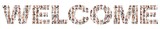 Diverse individuals collage forming the word 'Welcome' in uppercase letters