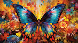 Vibrant butterfly surrounded by flowers