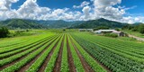 Scenic panoramic view of a vegetable farm surrounded by lush green mountains