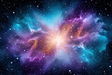 Bright cosmic nebula in vibrant blue, purple, and pink hues in deep space