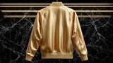 Elegant gold satin bomber jacket mockup in a polished studio setting