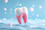3D rendered illustration of a clean white and pink tooth with bubbles