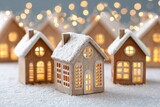 Red candle glowing in winter snow with soft holiday bokeh lights