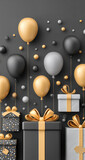 Happy boy with colorful balloons at birthday party (Generative AI)