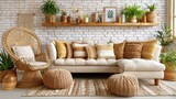 Boho style living room with cozy wicker furniture and neutral shades
