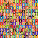Colorful abstract illustration of diverse and vibrant faces in geometric forms