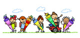 Glückliche Schulkinder mit Schulranzen und Büchern