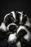 Adorable skunk floating gracefully in the sky, captured on a clean white background, showcasing the charming expression and fluffy tail of this cute animal.