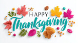 Happy Thanksgiving Greeting With Colorful Autumn Leaves And Berries On White Background For Holiday Celebrations And Seasonal Designs