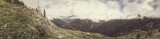 Panoramic view of an alpine landscape with distant mountains and open skies