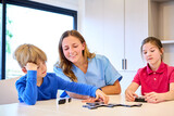 Gruppe Kinder macht Hausaufgaben in Ganztagsschule