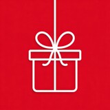Elegant white gift box with red ribbon bow on a red background, perfect for gifts
