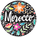 Morocco. Hand drawn lettering with flowers. Vector illustration.