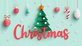 Christmas Tree And Ornaments On Light Blue Background For Holiday Season Greetings And Festive Celebrations Paper Cut Decoration
