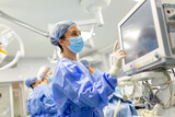 Modern surgical surgery operating room sterile equipment environment for treatment therapy improvement outcome patient care doctors physician nurse teamwork medical team advanced technology examine