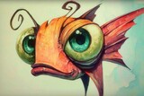 Whimsical cartoon fish with large eyes and vibrant colors in funny design