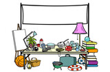 Viel Secondhand Trödel auf Tisch bei Flohmarkt Stand
