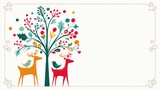 Holiday Card Design With Reindeer Birds Tree Berries and Decorative Frame On White Background For Christmas And New Year Celebrations