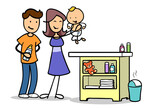 Eltern heben Baby mit frischer Windel vom Wickeltisch hoch