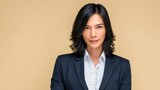 Confident Thai businesswoman in formal attire against beige background with copy space