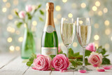 Vibrant New Year's celebration with champagne and golden 2025 glitter