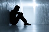 Silhouette of a thoughtful man sitting in a quiet corridor