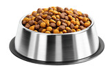 PNG Stainless Steel Pet Food Bowl Filled With Dry Kibble Isolated On White Background For Animal Nutrition And Feeding Concepts
