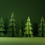 Minimalist artistic paper cut trees on a dark green background