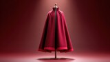 Elegant burgundy cape coat displayed on mannequin with rich red fabric