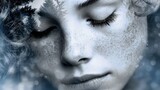 Dreamy woman with double exposure of winter forest, peaceful portrait, serene expression, artistic conceptual design, fantasy nature, ethereal beauty, tranquil scene, dreamy mood