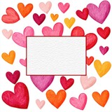Watercolor Hearts Frame On White Background For Valentine's Day Anniversaries And Special Occasions With Space For Text Or Message