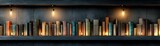 Bookshelf with Old Books and Edison Bulbs Vintage Style Dark Moody Interior Perfect for Library or Study Background