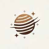 Minimalist retro planet with rings and stars in warm brown tones for space decor and design