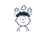 Cartoon Boy With Question Marks Above Head On Gray Background Illustration Of A Confused Child With Brown Hair And Black Shirt Uncertainty