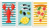 Artistic display of Italian cuisine featuring lobster, fish, and pizza