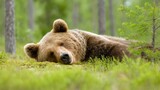 Sleeping brown bear resting peacefully in a tranquil forest environment